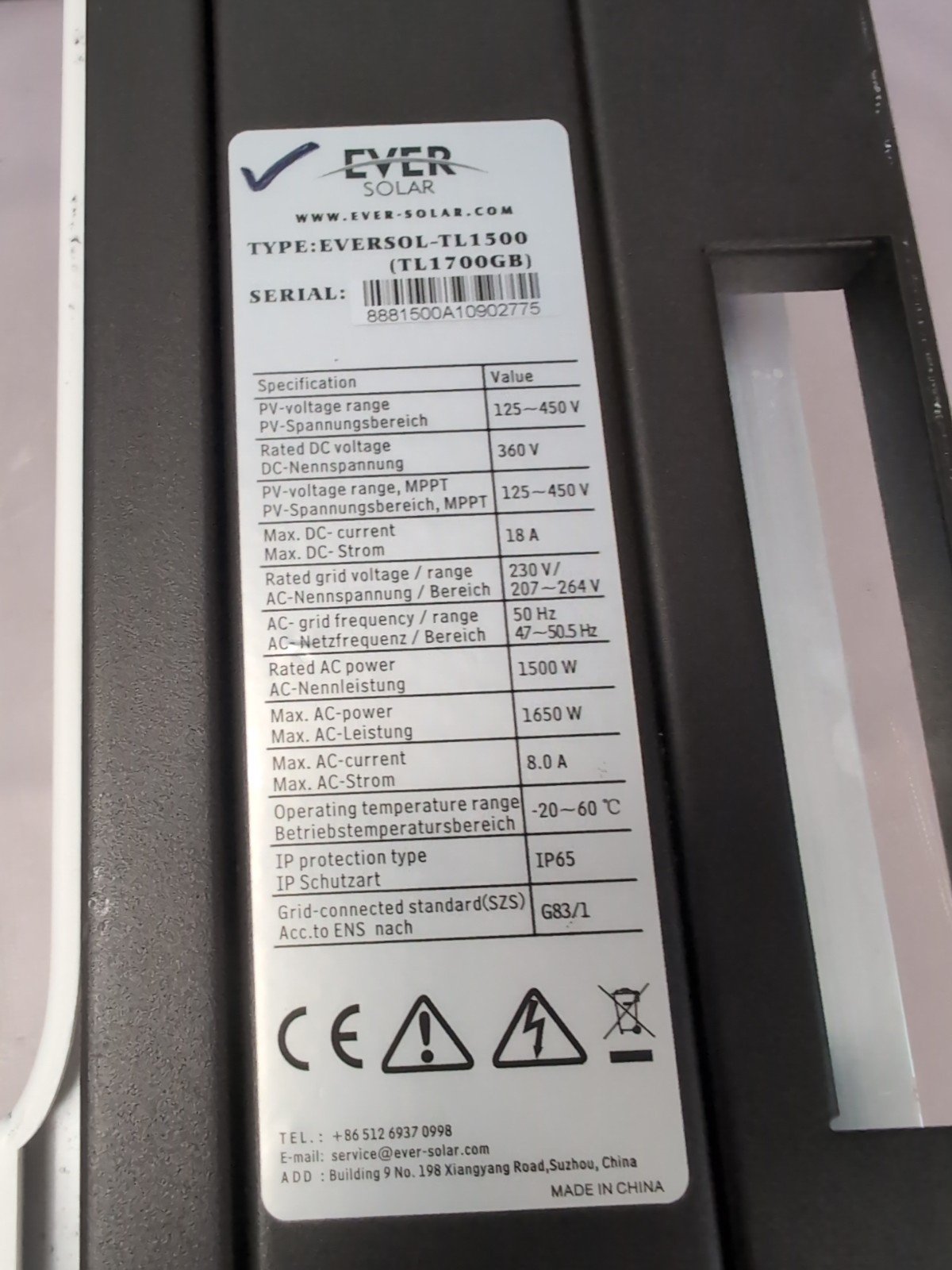 - Model: Eversolar TL1500