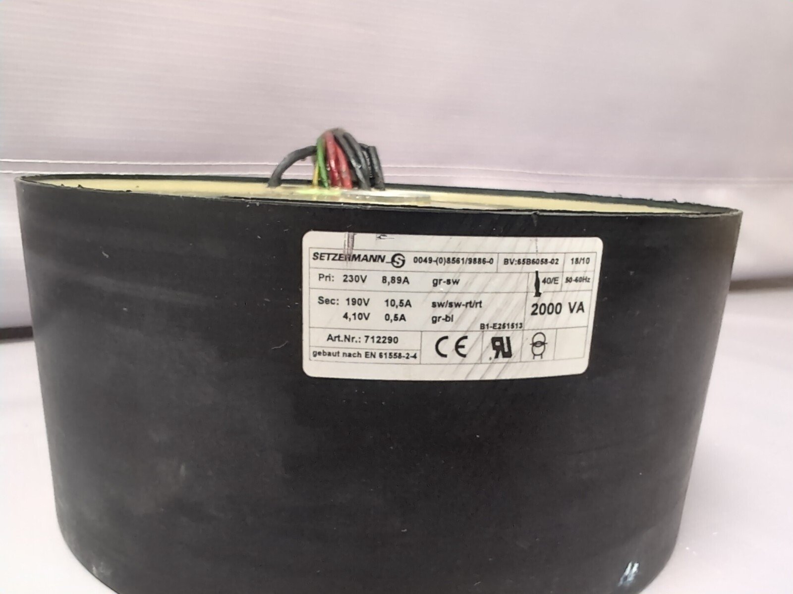Large 2000VA toroidal capsulated transformer with 230V primary and secondary outputs of 190V plus 4 × 10V windings. Suitable for inverter repairs, custom power supply builds, and high-power electronics applications requiring multiple secondary outputs.