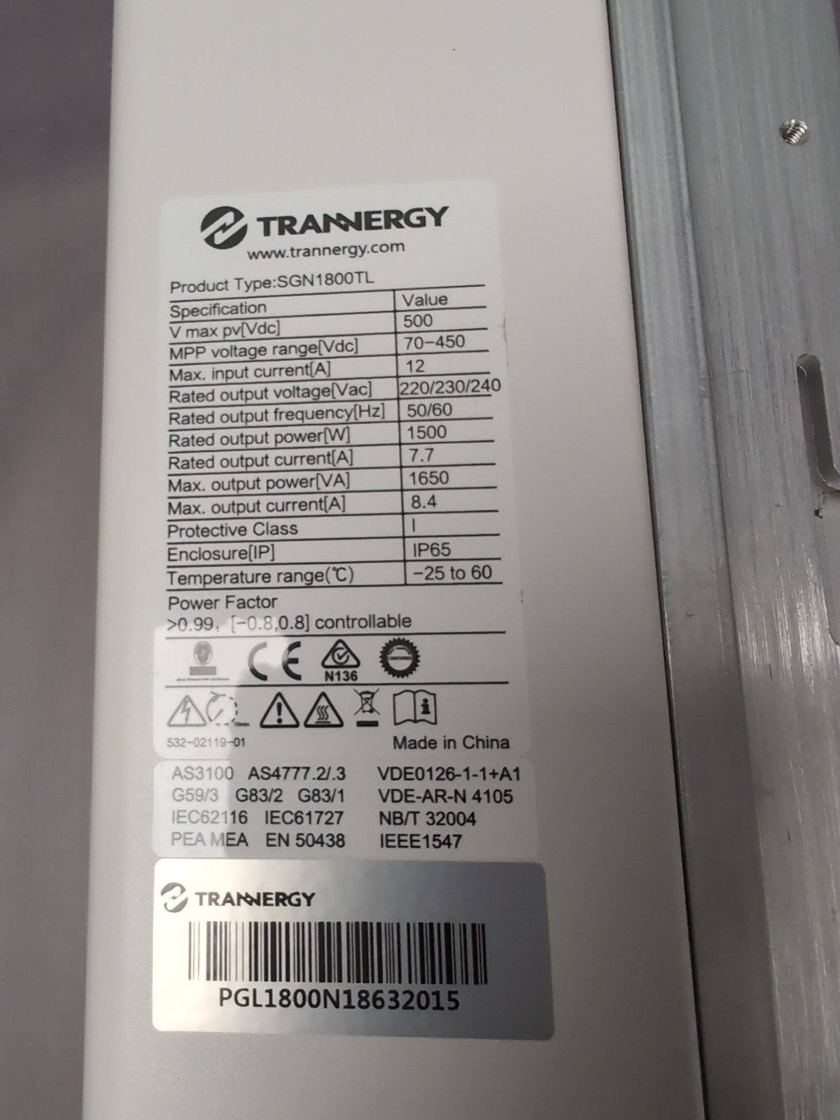 🌞 Trannergy SGN 1800TL – 1.5 KW Grid-Tied Inverter