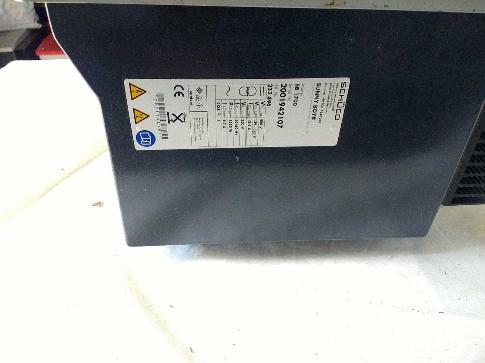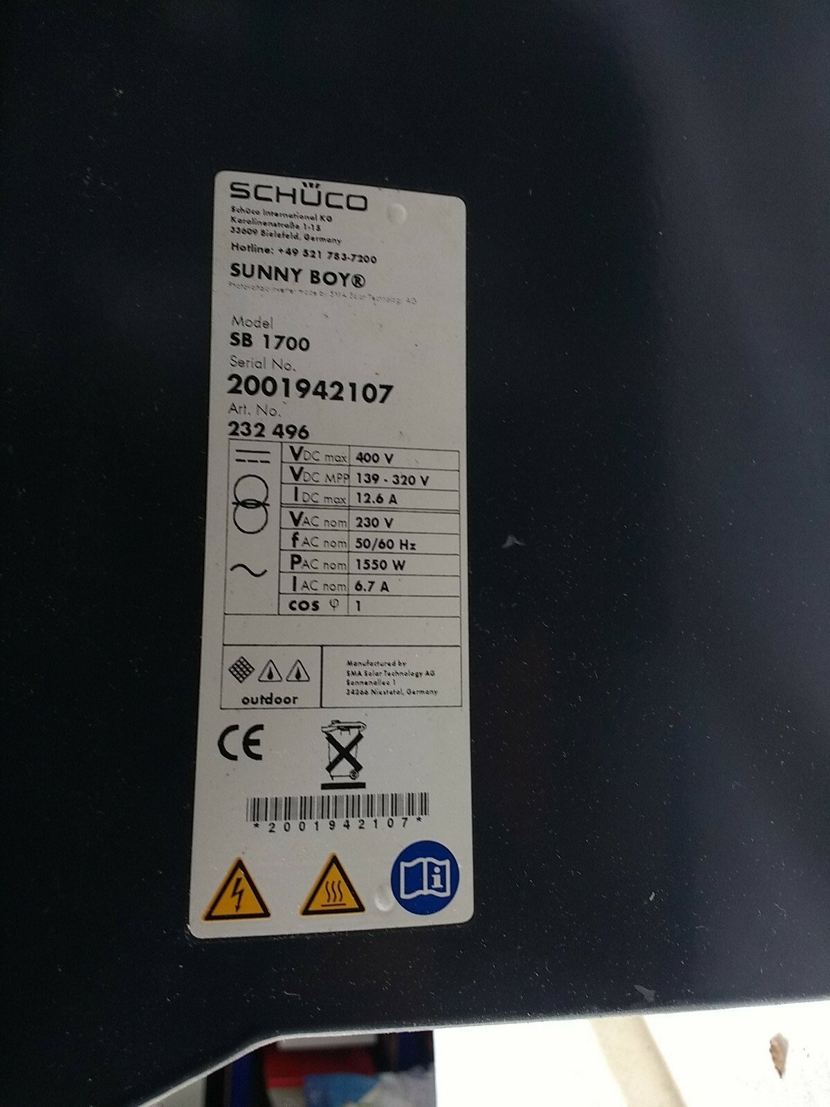 The Sunny Boy SB1700 is a reliable 1.7kW grid-tied solar inverter manufactured by SMA (also branded under Schüco). Designed for small domestic PV systems, this unit is known for durability and long service life.