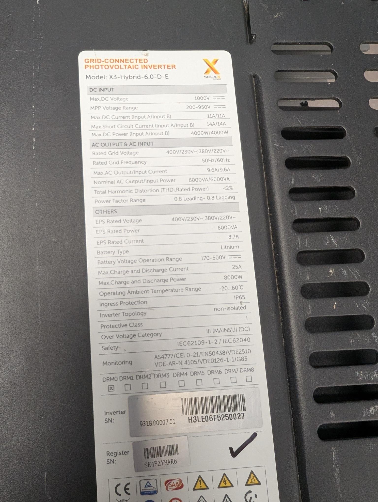 Solax 6 Kw 3 phase Hybrid inverter