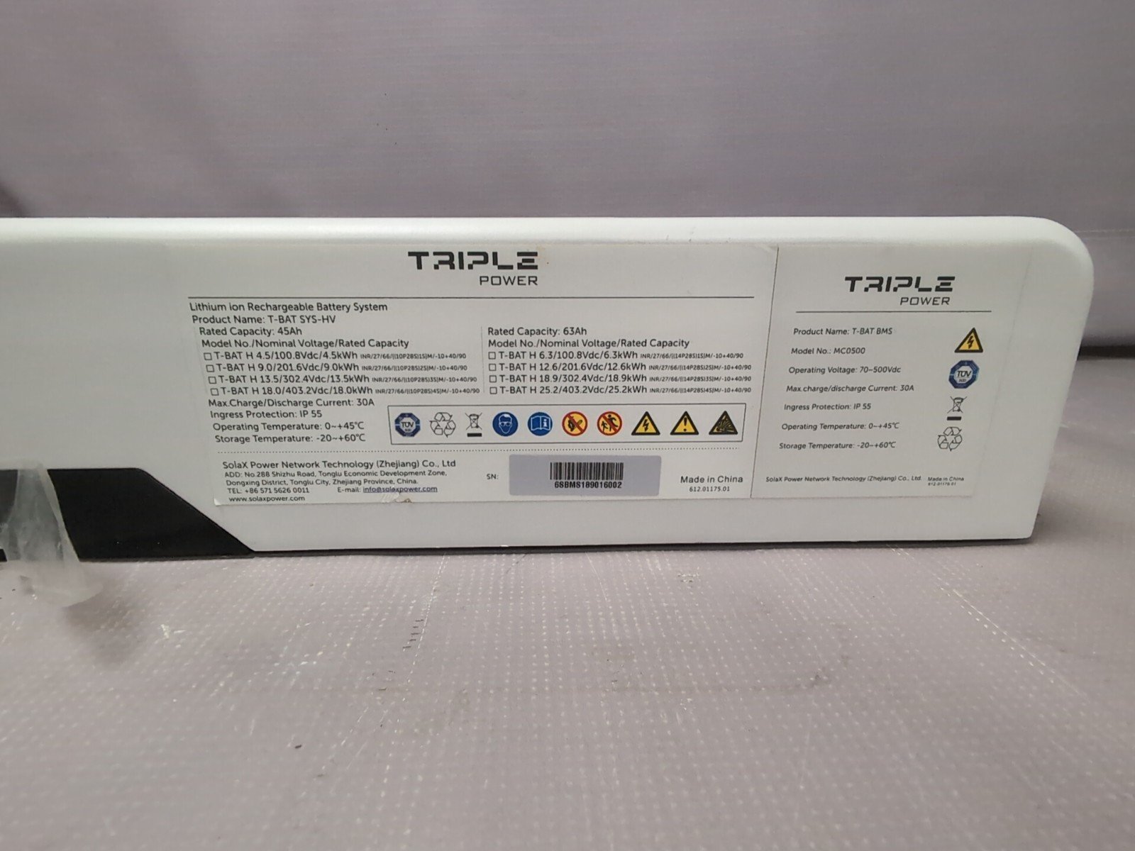 SolaX Triple Power T-BAT BMS Mc0500 top-hat module — battery management system accessory for SolaX Triple Power setups. Designed to provide safe battery monitoring and control in solar battery/storage configurations. Ideal for repairs, upgrades, or system integration.