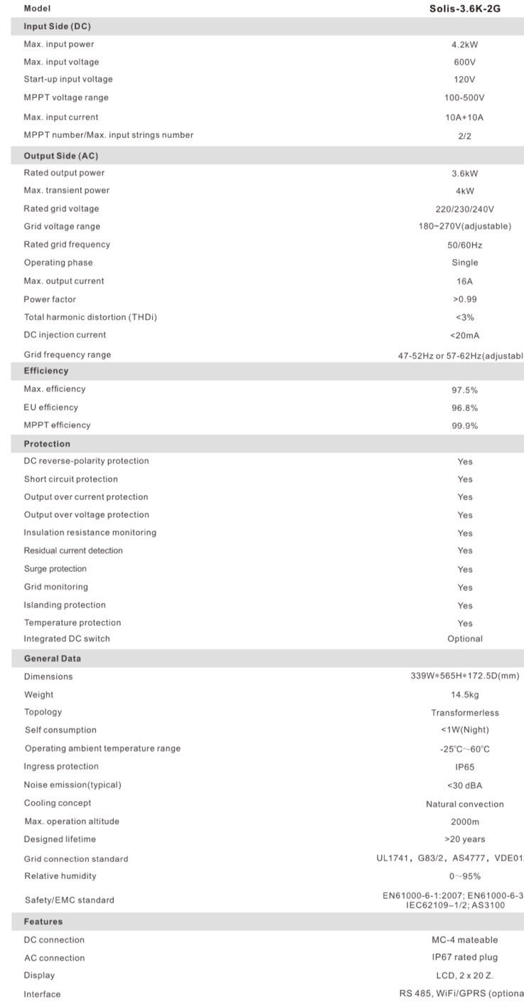 Solis / Ginlong 3.6K‑2G – 4.2kW Solar PV Inverter